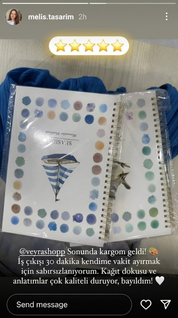 EYLÜL 2025DDamla Y.Onaylanmış KullanıcıSayfaların kalitesiyle ilgili en sevdiğim şey, suluboyaları çok iyi emmesi. Kesinlikle fiyatına değer ve tekrar seve seve satın alırım.